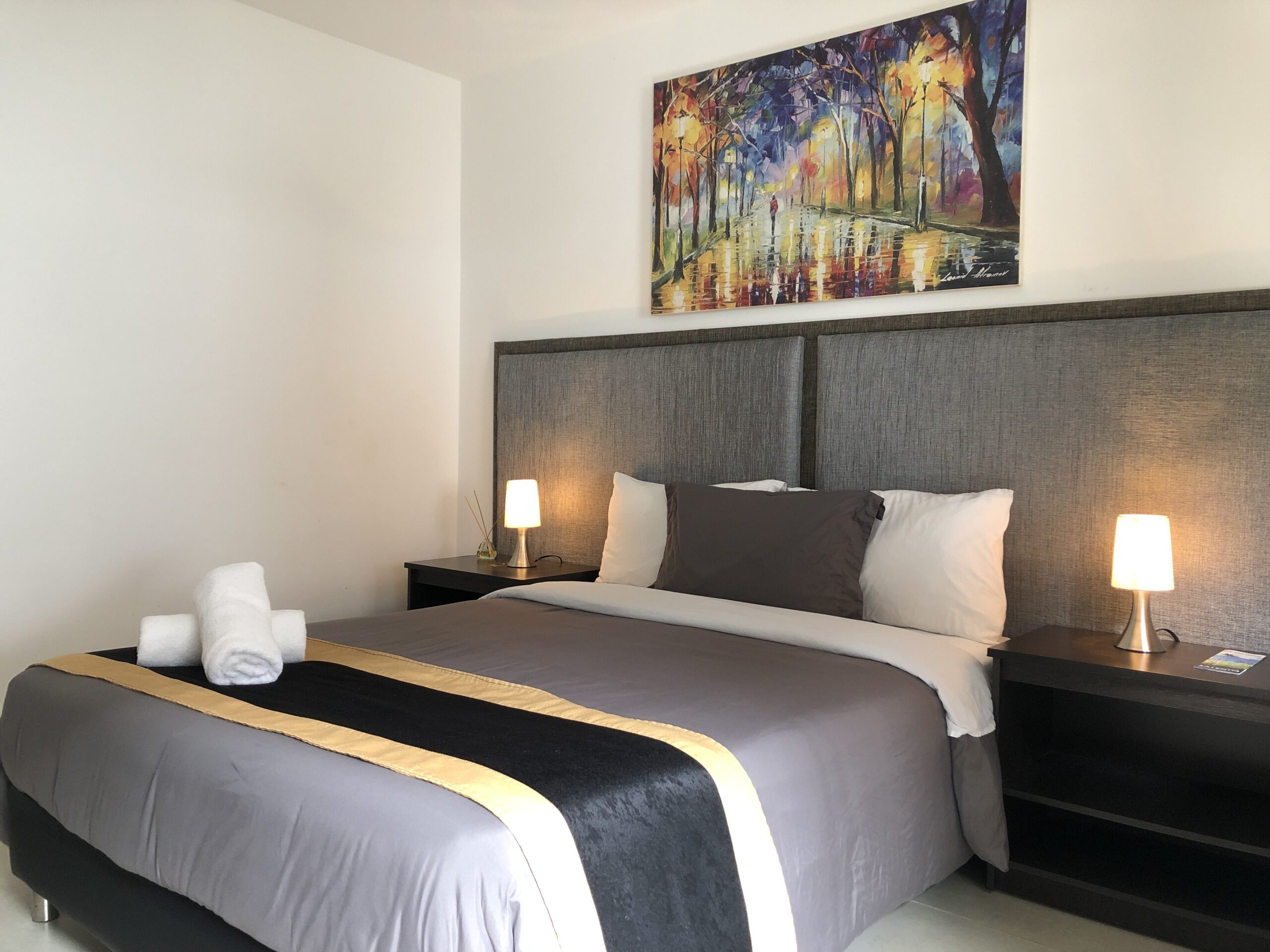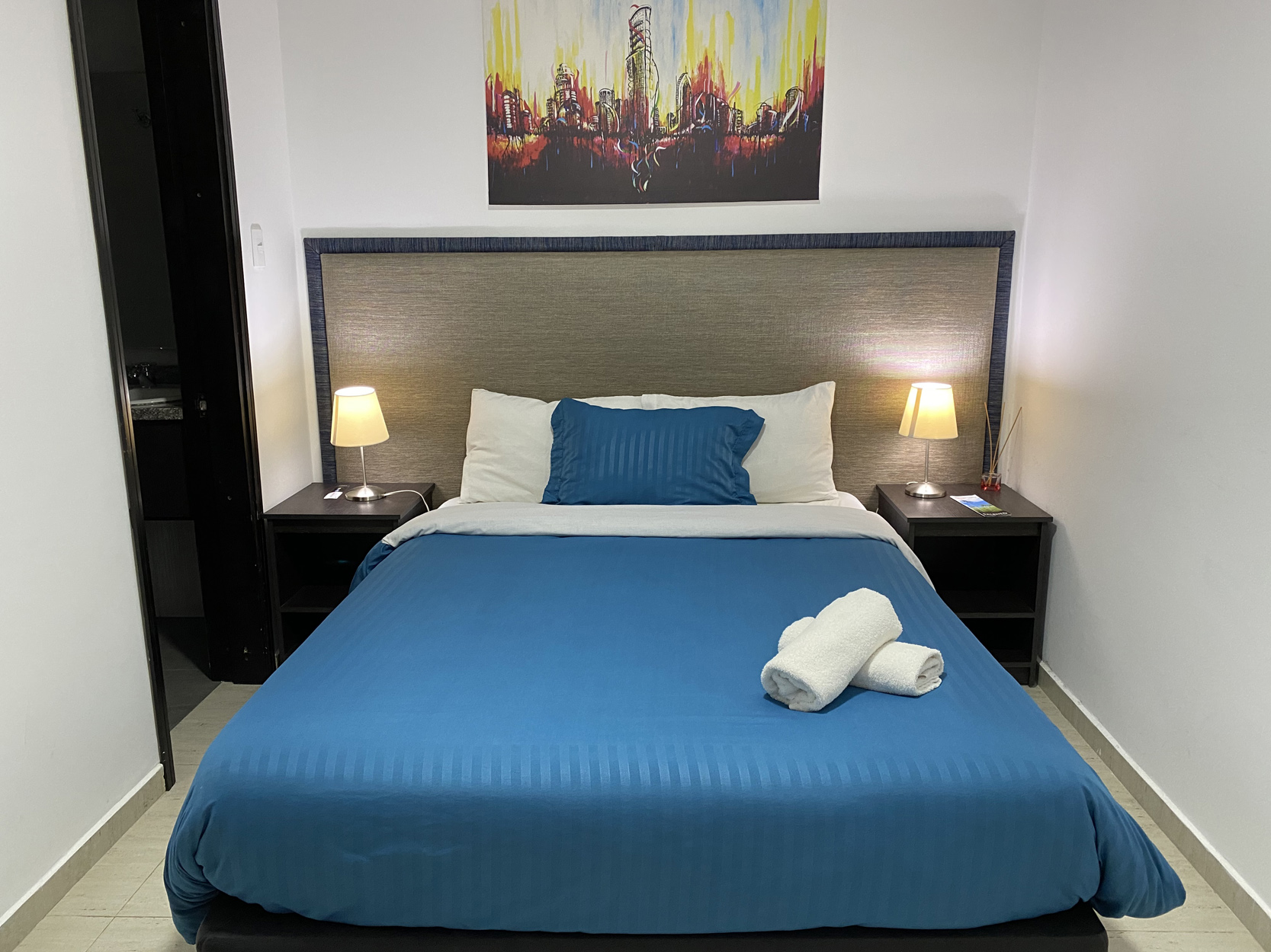 Esta habitación tiene un diseño minimalista y sin TV, perfecta para quienes buscan desconectarse sin perder lo necesario para mantenerse comunicados.